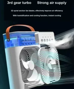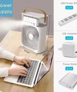Portable humidifier fan three in one, mini USB air conditioning fan, LED night light, water mist, home fun air cooler humidifier